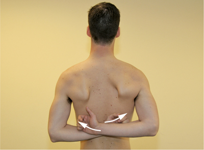 - Inward rotation (starting position: the 90° flexed elbows are positioned at the flanks) [Figure 23].