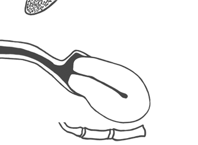 Normally the cervix is smooth. The consistency is firm and rubbery, like the tip of your nose. The external os is closed (except during labour). The vaginal portion of the cervix points in a specific direction in the vaginal canal: towards the symphysis, centrally or towards the sacrum. This is also dependent on the cervix and the uterus. If the os points in a sacral direction, the uterus will be tilted forward in relation to the vaginal axis: anteversion [Figure 46a]. If the cervix is pointed towards the symphysis, the uterus will be tilted backwards in relation to the vaginal axis: retroversion [Figure 46b].