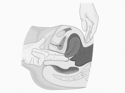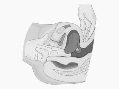 - Insert the relaxed fingers into the vagina as far as possible. The bent 4th and 5th finger can be pressed against the perineum if required.
