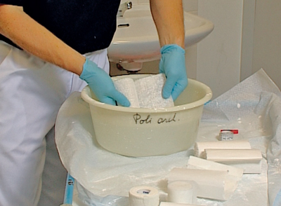 • Plaster rolls; select the appropriate width, depending on the size of the arm; remove the plaster rolls from the packaging.