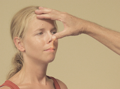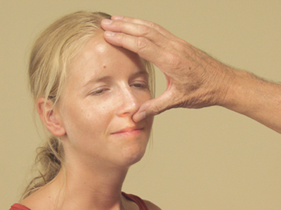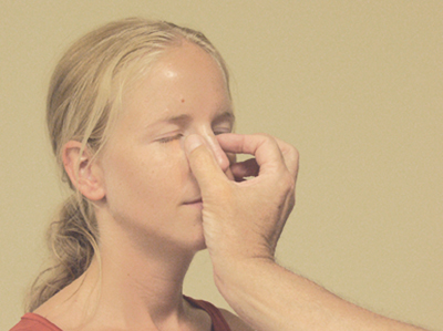 • To do this, first close off one nostril and then the other by placing a finger on the underside of the nostril [Figure 24].