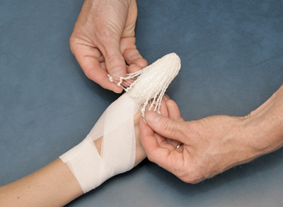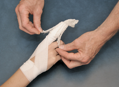 - Tie a small knot in one end of the bandage.