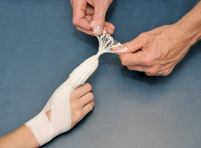 - Place half the elastic net bandage over the finger [Figure 77].