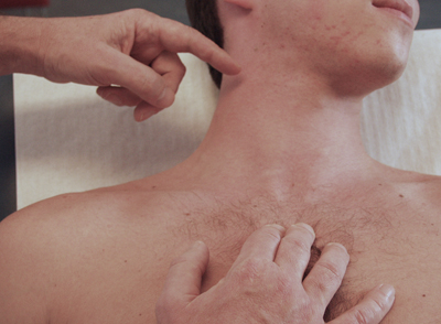 Sometimes pulsations in the jugular vein can make it difficult to determine the precise collapse point. This can be solved by compressing the cranial jugular vein (at the patient’s head) and then emptying it by stroking it in a downwards direction using the index finger of the other hand. The collapse point then becomes more clearly visible.