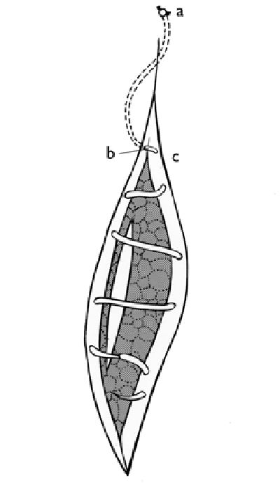 - Insert the needle ½ cm intracutaneously in one of the wound margins [Figure 35-c].