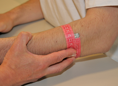 If required, also measure the circumference of the upper arm. Determine a point 10 cm proximally from the lateral epicondyle.