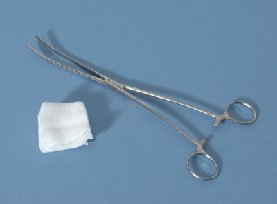 Dabs away any mucus/discharge/blood using a gauze swab or sponge, if necessary. - Kidney bowl.