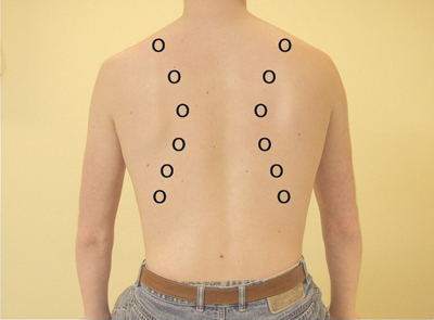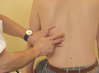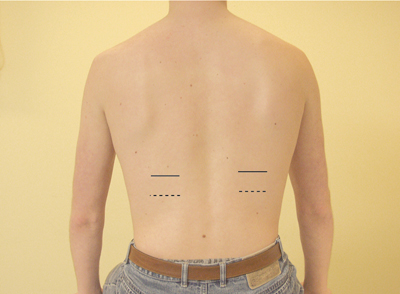 Figure 24: Topographicpercussion of the posterior thorax and the examination of the lung mobility