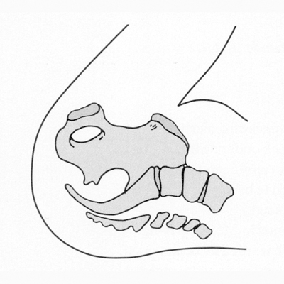 During the engagement of the shoulders, it is possible for something to go wrong due to the width of the shoulders, the dimensions or the shape of the pelvis, the relationship of the shoulders with respect to the pelvis or the policy of the care provider. If the shoulders engage in the anteroposterior orientation instead of in the oblique position, or if they both pass through the pelvic brim at the same time, the anterior shoulder will remain stuck behind the pubic symphysis and the posterior shoulder will remain impinged behind the sacral promontory. Typical for this ‘high’ or ’posterior’ shoulder dystocia is that the head will not be born completely and will appear to be drawn back into the birth canal (‘turtle sign’). The chin will appear to be stuck against the perineum and external rotation does not occur.