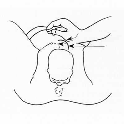 - Take hold of the head in a biparietal manner. Under no circumstances may the external rotation be forced using the head. Doing this could reinforce the tendency of the shoulders to remain in the anteroposterior position. If necessary, reverse the external rotation.