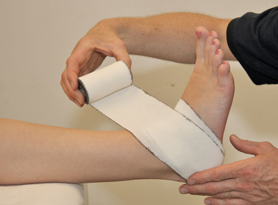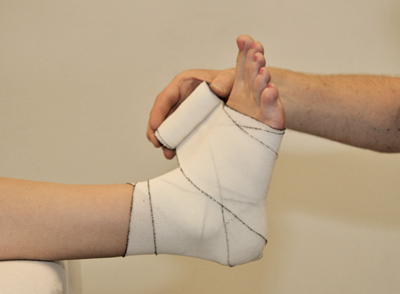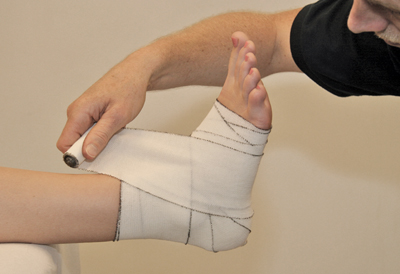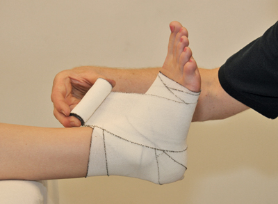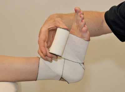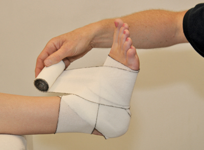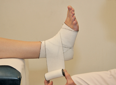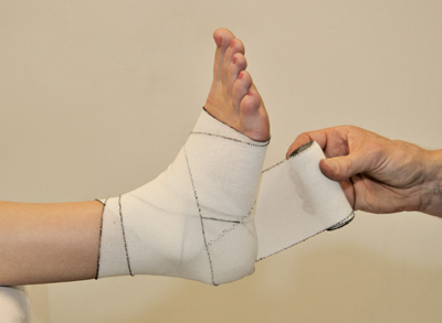 - Finish the bandage with a few circular turns around the bottom of the ankle [Figure 102].