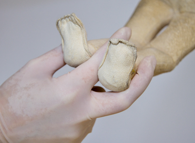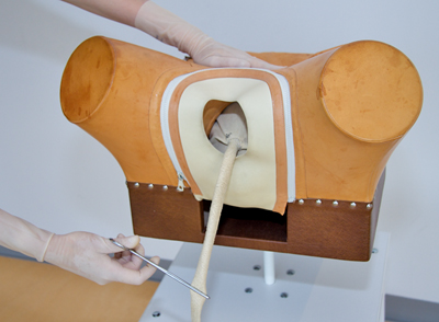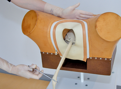 • Insert a gynaecological tampon (gauze with a string attached) as high as possible into the vagina and allow the string to hang out of the vagina.