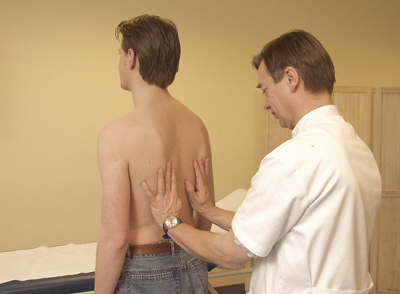 Figure 22: Palpation of the vocal fremitus at the suspect area compared to the contra-lateral side while the patient says “ninety-nine”